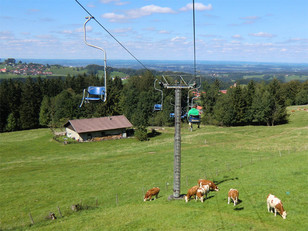 Die Hochriesbahn hat zwei Sektionen. Die untere Sektion eine Sesselbahn, die obere Sektion eine Kabinenbahn.